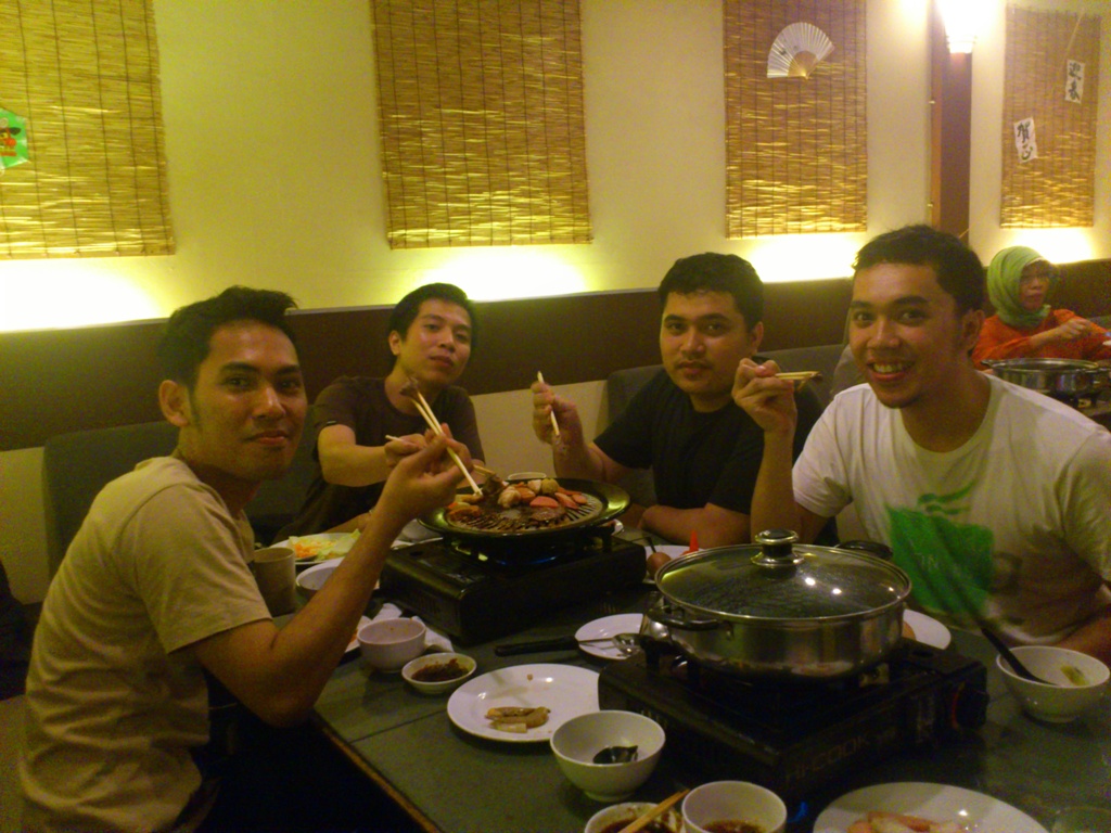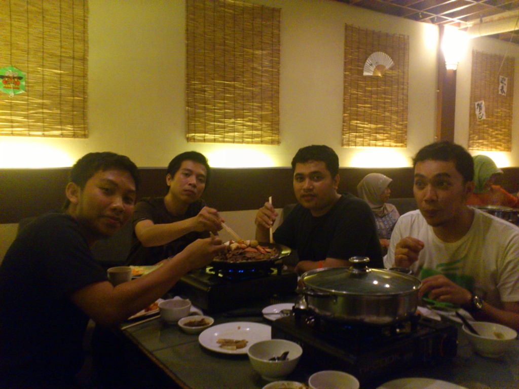 Bakar Celup, All You Can Eat! Arif Setiawan, October 25, 2012September 14, 2020 Hari sabtu kemarin saya dan teman-teman secara random malem mingguan di kota. Biasanya ya cuma sama komputer diselingi nonton bola. Ceritanya kulineran di Bakar Celup, All You Can Eat! Berlima cowok semua, haha. Kasihan kami ya? Nah, karena di sini sistemnya “all you can eat” ya berarti boleh ngambil sebanyak-banyaknya yang kita mau, mantep kan? :mrgreen:. Tapi untuk sekali proses penjarahan makanan ini setiap orang bakal kena tarif Rp 70.000 dan batas waktunya 2 jam, ga boleh lebih dari itu. Lumayanlah, karena lebih murah dari Hanamasa, tapi ya makanannya ga sebanyak seperti di sana. Minumannya juga lebih terbatas. Bagi yang ingin mencoba silahkan langsung menuju ke Jln. Purnawarman, sebelah Gramedia, seberang BEC, satu kompleks dengan Ngopdul dan Republik Kuliner di lantai 2 nya. Tempatnya nyaman, cocok juga jika pengen bareng keluarga ke sininya. Dan ga terlalu rame seperti Hanamasa yang biasanya ada waiting listnya. Selamat Mencoba! 😀 38 readers Related Culinary Bakar CelupBandungFriendsHanamasaWisata Kuliner
